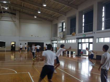 この日は、教育実習生による指導の中で、「レシーブ→トス」という3段攻撃につながる技術を身につけていきました。