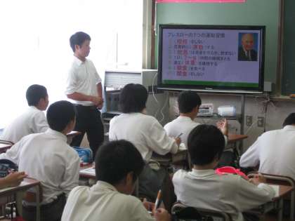 9月13日(火)教育実習生の研究授業が行われました。睡眠時間を削って作成した学習指導案をもとに、大学の先生や教科の先生に見守られながら懸命に授業していました。
