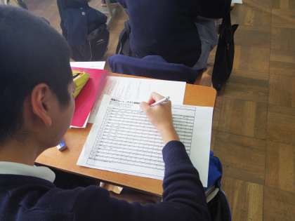 進路決定に向けて重要となる第4回テストを前にした3年生は、1年生時から続けているテスト前の学習計画を書き込む「段取りシート」を作成しました。