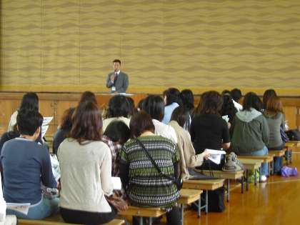 2年生は体育館で学年懇談会でチャレンジ体験の説明がありました。