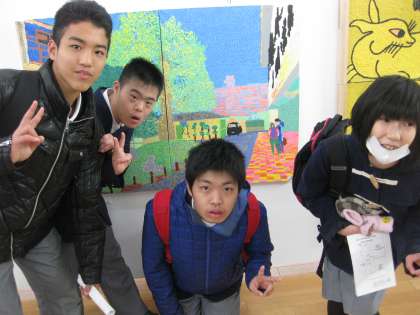 地下鉄を乗り継いで会場にたどり着いた9組のメンバーは、自分の作品を見つけ歓声をあげていました。午後からは二条城へ行き、二の丸御殿などを見学し、帰途につきました。電車の乗り継ぎや公共マナーなどを学習した、有意義な一日となりました。