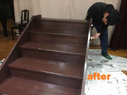 なんと言うことでしょう。色あせた階段がきれいに生まれ変わっているではありませんか。