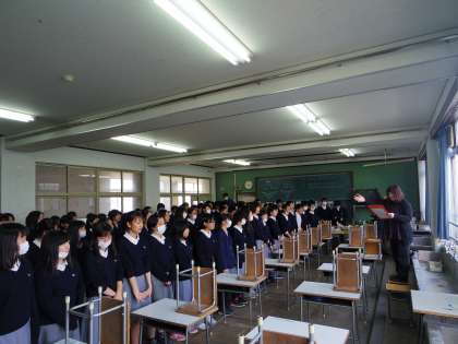 昨日の学活では、3年生を送る会の中で歌う御礼の合唱曲の練習を、前半クラス・後半クラスに分けて行いました。