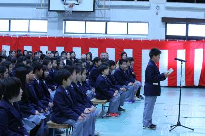 4月7日(金)「第71回 入学式」を行いました。新入生を待ちかねたように校門の桜は咲きほこり、多数の保護者・ご来賓の皆様のご参列のなか、第71回の入学式を無事終えることができました。入学生は207名。すこし緊張した面持ちで、しっかりと中学校の門をくぐりました。式後の学活では早速教室に入り、新担任と初めての顔合わせを行いました。11日(火)には「新入生を迎える会」が予定されています。