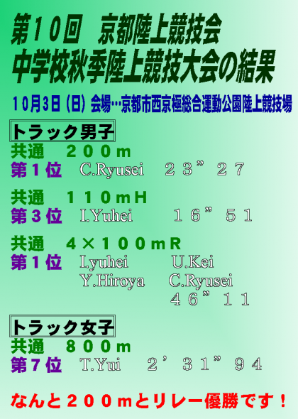 第10回 京都陸上競技会中学校秋季陸上競技大会の結果