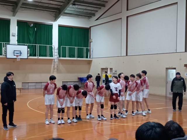 2月1日(日)近畿中学生バレーボール選抜優勝大会 京都府予選会が大枝中学校で行われ,男子バレー部は2回戦に挑みました。2回戦の西ノ岡中学校戦では終始リードを奪い、2−0で勝利し、3回戦は青葉中学校。途中、リードを奪われる場面もありましたが、最後まで粘り強く戦い、見事2-0で勝利し、ベスト8進出を決めました。 この結果、次のベスト4をかけた一戦で勝利をすると、3月に行われます近畿大会出場が決まります。近畿大会出場に向けて、男子バレー部の皆さんの活躍を期待しています!