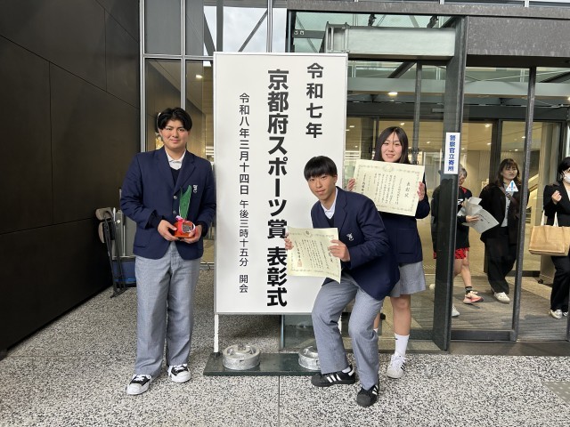 3月14日(土)に行われました令和7年度京都府スポーツ賞において、本校ラグビー部および女子ハンドボール京都選抜で活躍した本校生徒1名が表彰されました。