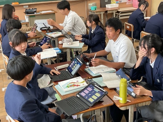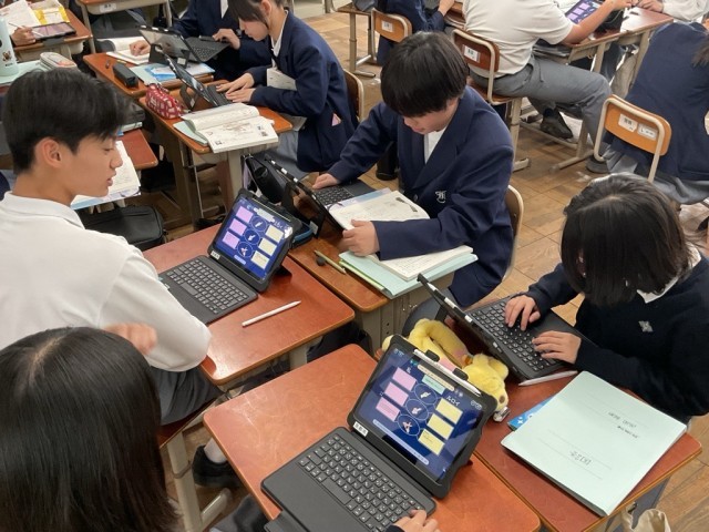 ルロイ修道士の人柄や生き方を「わたし」を通して考える授業でした。ルロイ修道士の指言葉にそって、グループで話合いました。その後、自分の班に戻って、話し合ってきた内容を共有し、ロイロノートでまとめました。登場人物の言葉や動作から心情を的確にとらえることはできましたか?この井上ひさしの「握手」という教材は長い間中学校の教科書に取り上げられています。ぜひ家庭で思い出しながら共有してみてください。