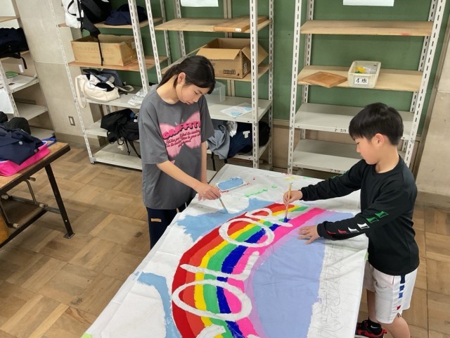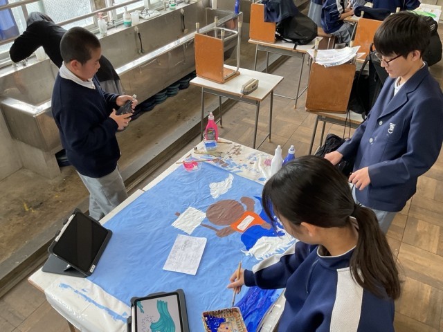 学級旗を作成しています
