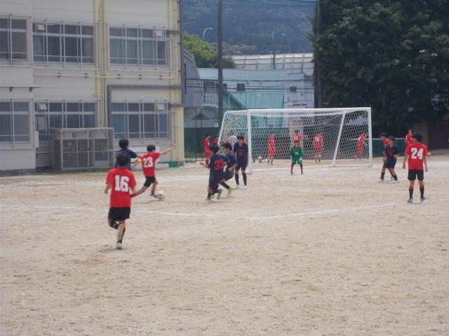 4月25日(土)勧修中学校を会場に,サッカー部の春体1回戦が行われました。対戦相手は洛北中・下鴨中の合同チーム。後半に1点を先取するもすぐに追いつかれるという拮抗した展開でしたが,最後まで果敢に攻め,終了間際に1点を追加し,2-1で勝利しました。次戦は29日(水)京都教育大学附属桃山中学校を会場に,西ノ京中学校との対戦になります。10時20分キックオフです。