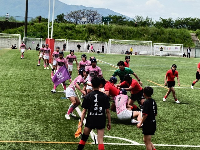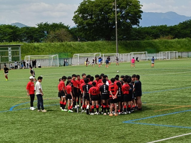 4/25(土)SBSロジコム吉祥院公園球技場にて本校ラグビー部は四条中学校と対戦しました。まさに圧巻の活躍ぶりでした。練習で積み重ねてきたことを試合で発揮することは意外と難しいことですが、イメージ通りの試合展開をしているのだろうなと感じさせる戦いぶりでした。見ていてとても清々しい、力強さとともに誠実さを感じるチームだという印象です。結果は55対7で勝利。顧問の先生方からはまだまだ叱咤激励をされていましたが、反省点も含めてこの後の成長が楽しみです。このままてっぺんまで勝ち進んでいってください。保護者・関係者の皆様、応援ありがとうございました。