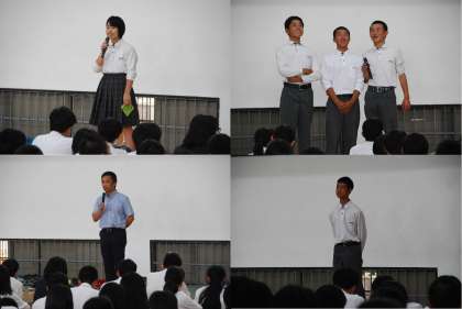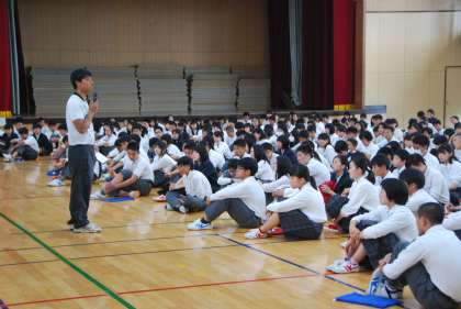 5月18日(金)6限,3年生が体育館に集合し,修学旅行結団式が行われました。生徒会と修学旅行実行委員が中心になって,来週から始まる修学旅行について決意表明をしました。今年のテーマは『Enjoy南国!〜400人でおーきなわ〜』です。3年生全員が大きな声で今年のテーマを言う姿がとても印象的でした。出発前から学年で団結して修学旅行を成功させようという意気込みが伝わってきました。