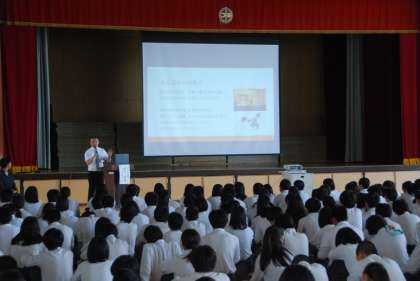 7月3日(火)6限,3年生を対象に,体育館で『高校の先生の話を聞く会』が行われました。京都府立向陽高等学校と京都明徳高校の先生方が入試についてや,高校での特色を分かりやすく丁寧に説明してくださいました。生徒たちは真剣な表情で真っすぐに聞いていました。進路に対して意識を高めることができたとともに,有意義な時間を過ごすことができました。