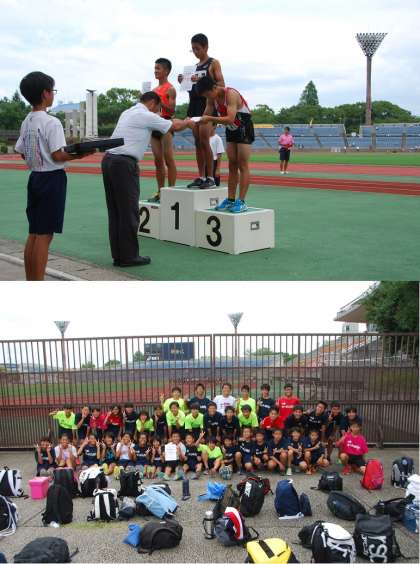 7月27〜28日の二日間,西京極陸上競技場にて,陸上競技部の府大会が行われました。神川中学校からは,男子低学年リレー,女子4×100mリレー,2年男子100m,3年女子100mで出場することができました。結果,3年女子100mは12"86で第7位に,2年男子100mは11"46で第3位に輝くことができました。同時に,2年生男子100mで近畿大会に出場することが決まりました。近畿大会は8月7日(火),大阪万博記念競技場で行われます。引き続き応援よろしくお願いします。