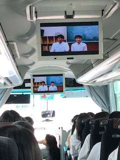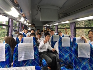 博多駅から唐津市文化体育館までのバスレクの様子です。