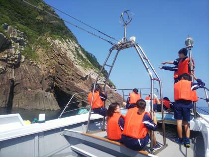 志々伎地区では、船で沖合いの島々を巡っています。