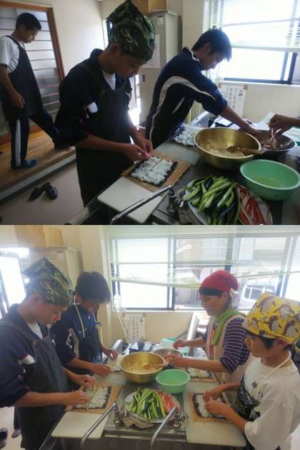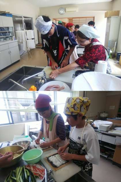 寿司作り体験では、旬のイサキをさばいて巻き寿司を作ります。