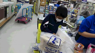 ホームセンターでの様子です。レジの補助や品出しを頑張っています。