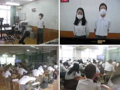 7月30日(木)1限に,2年生が学年集会を行いました。各クラスの評議員からクラスの様子の発表がありました。先生からは夏休みの過ごし方についてのお話がありました。放送での集会でしたが,クラスの発表には拍手をして各教室から集会に参加ししていました。