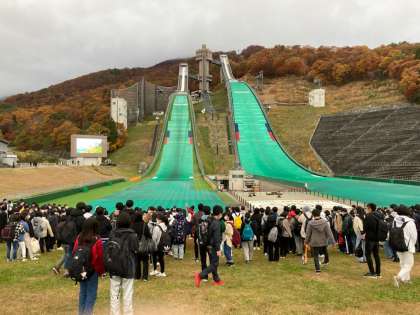 体験学習を終了して,白馬ジャンプ台の見学です。