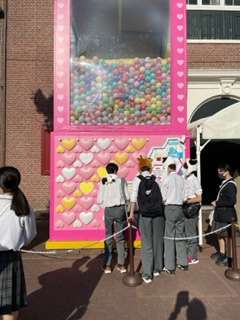 ハウステンボスで有名な巨大ガチャにみんな挑戦しています。何が出てくるのか?