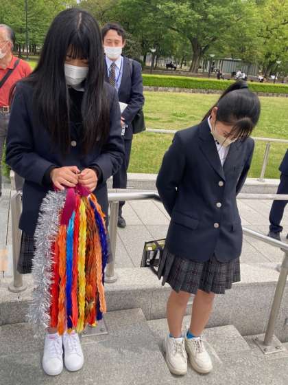 現在はA・Bに分かれての活動です。平和記念公園では、みんなんで作った千羽鶴をセレモニーの中で納めてくれています。残念ながら、今も世界では紛争が起きています。平和への祈りを続けていきましょう。