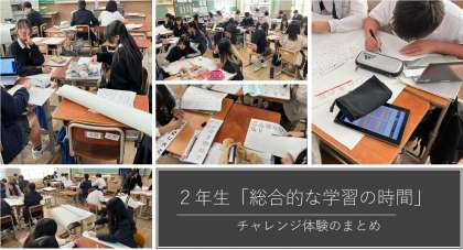 2年生の「総合的な学習の時間」では、チャレンジ体験のまとめを行ってます。11月28日には、来年度チャレンジ体験を実施する1年生に向けて発表を行います。より良い成果物が出来るように力を合わせて学習してください。