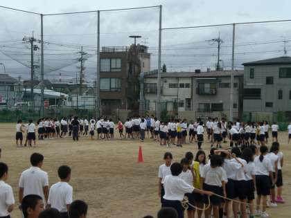 心配された雨も止み、9月11日(火)1・2時間目に予定通り1年生の体育学年練習を実施することができました。1年生にとっては中学生になって初めての体育大会です。みんな張り切ってます。今日は学年競技「大縄跳び」の練習を行いました。各クラス声を掛け合い、協力しながら練習に取り組んでいました。