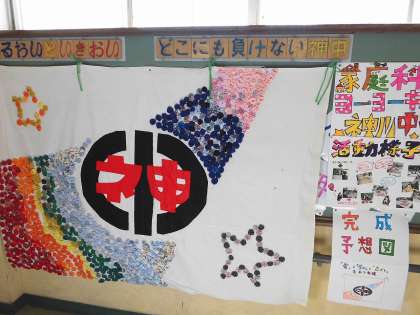 大型タペストリー 余り布をうまく利用して部員全員で製作しました。文化祭展示後も掲示物として活用してもらえたらうれしいです。京都市総合文化祭にも出展します。
