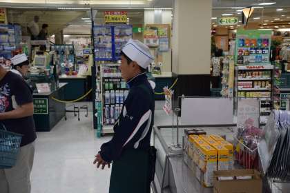 スーパーでの様子です。品物の整理やお客様の案内をがんばってます。
