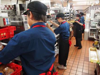 スーパー、ハンバーガーショップ、ベーカリーでの様子です。