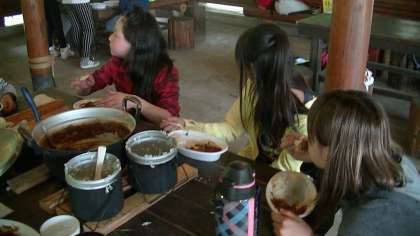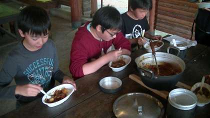 6月5日(金)1年生約370名は、観光バスに分乗して滋賀県「ガリバー旅行村」へ行きました。「ガリバー旅行村」では、班ごとに分かれて飯盒炊爨に取り組みました。メニューは、カレー・シチュー・ハヤシの3つの中から班ごとに選びました。少し水っぽい仕上がりになった班や、少し焦がしてしまった班もありましたが、すべての班が自分たちのつくったものをおいしく食べることができました。