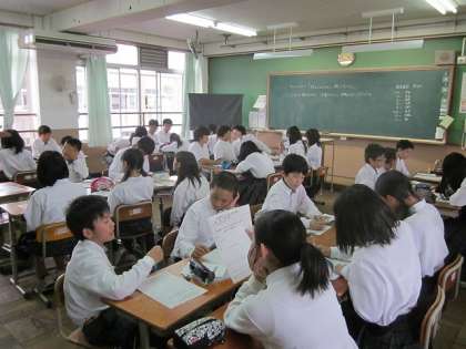 6月8日(月)6限、1年生では、「ガリバー旅行村」での遠足を終えて、各班の目標である「○○に優しい飯盒炊爨」ができたかどうか、振り返りました。班でしっかりと話し合い、これからの仲間づくりにいかしてくれることと思います。