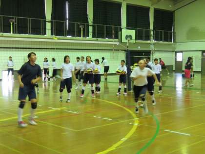 今年の女子バレーボール部はみんなで大きな声を出してまとまれる良いチームです。