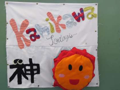 本館の階段の掲示板に、家庭科部が昨年作成し、総合文化祭に出品したお天気カレンダーが掲示されました。