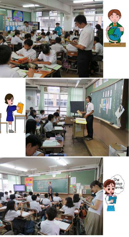 9月3日(木)5限、神川ブロックの4校、神川中学校と羽束師小学校、久我の杜小学校、神川小学校で、先生が交流して授業参観と研究討議が行われました。神川中学校では1年生の5クラスで国語、社会、数学、理科、英語の授業が行われました。