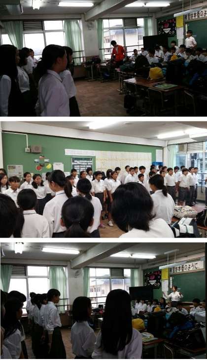 各クラス、2クラスずつが合同でお互いに歌い、聞き、自分たちの仕上がりを確認しています。少し緊張しながら真剣に取り組んでいます。