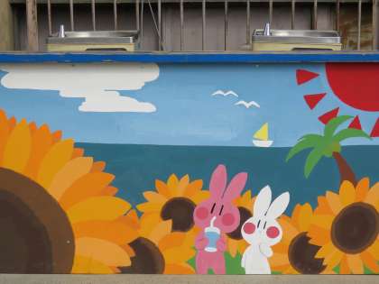 9月15日〈火)美術が作ってくれたパネルを管理用務員さんが体育館前のウォータークーラーに取り付けてくれました。