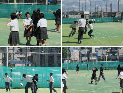 第3回テスト2日前で部活動が公式戦前の部以外は停止となっていることもあり、多くの生徒たちがオムニコートやグラウンドへでて体を動かして遊んでいます。