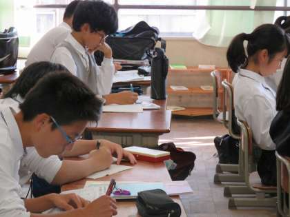 ノートにまとめている生徒、問題に取り組んでいる生徒、教科書を読んでいる生徒、