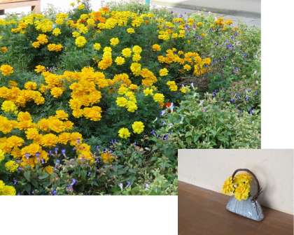 花壇にはガーデニング部が世話をしているジニアにペンタス、マリーゴールドがきれいに咲き続けています。秋の空の色とさわやかな風にゆれて、夏よりも色合いが優しくなったように感じます。その花を用務員さんが校舎内に飾ってくれています。