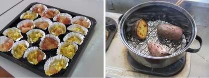 今回は自分たちで育てたサツマイモで焼き芋とスィートポテトを作りました。