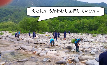 釣り体験の様子です。みんなインストラクターさんからの説明を一生懸命聞き、活動を楽しんでいます。