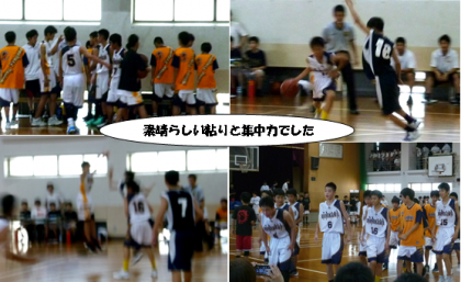 男子バスケット部の夏季大会での様子です。日ごろの練習の成果を十分に発揮し、よく粘り勝利をおさめました。この後もがんばりましょう。