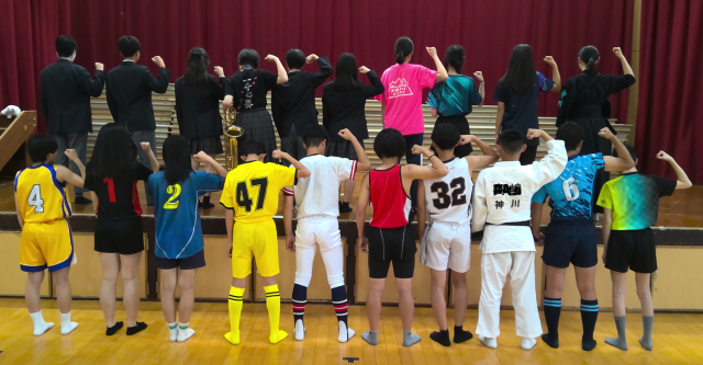 本日⑤限、部活動紹介でした。部活動の先輩たちが、「入部を待っています!」と1年生に向けて紹介をしてくれました。