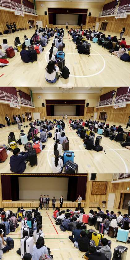 6時45分集合、体育館で結団式を行いました。