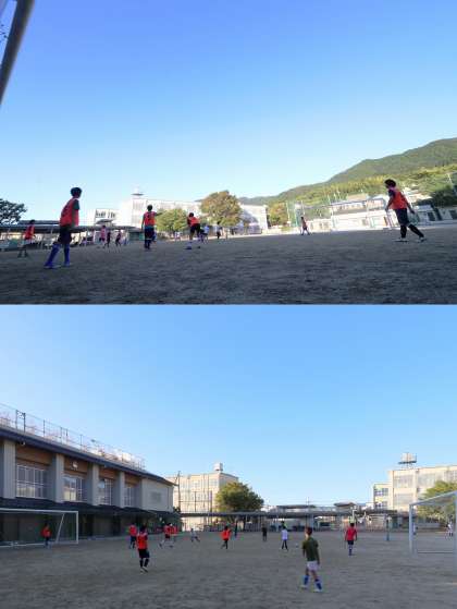 放課後のグラウンドでは、部活動を行っていました。