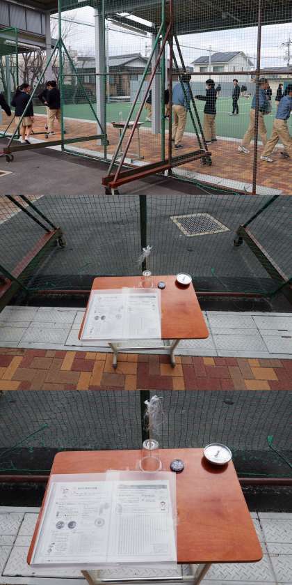 休み時間毎に憩いの広場横渡廊下で係の人が観測をします。