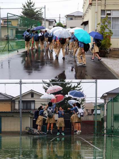 豪雨の中、サッカー部は練習をしていました。