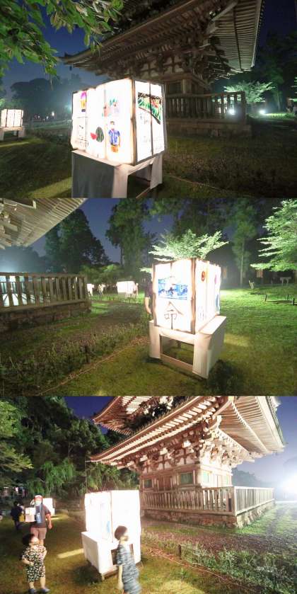 小学生の置灯籠は金堂前に、中学生の大灯篭は五重塔を取り囲むように配置されていました。